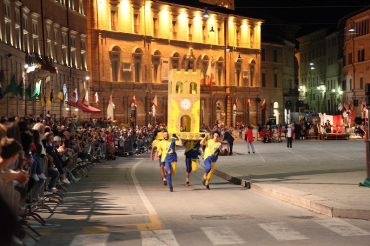Giovedì, 13 Giugno 2019 12:49 | Letto 894 volte Clicca per ascolare il testo Palio dei Castelli, per gli adulti domina Taccoli Nei giorni scorsi ha preso il via, oltre al Palio dei bambini, anche il Palio dei grandi, con il Torneo del Coccio, questa volta svolto in piazza del Popolo, in primo piano. Dopo le gare di tiro con la balestra e con l’arco con abbinamento a sorte dei tiratori ai Castelli o Rioni, in testa si trova il quartiere di Taccoli con 13 punti complessivi, inseguito da Di Contro ad una lunghezza. Sono 11 i punti per Colleluce, 10 quelli di Villa di Cesolo e 6 per rione Settempeda. La serata ha vissuto momenti palpitanti grazie ai balestrieri David, Remì, Forestiero, Golìa e Marchegià, abbinati rispettivamente a: Colleluce, Cesolo, Di Contro, Taccoli e Settempeda e classificati nell’ordine. Nel settore del tiro con l’arco l’hanno spuntata Sandro ed Emanuele per Taccoli, davanti a Pamela ed Elio per Di Contro; Terzi Giovanni e Beatrice che hanno difeso i colori giallorossi di Settempeda, quarti Flavia ed Ettore alla testa di Villa di Cesolo e quinti Luca ed Enrico, abbinati a Colleluce. Oltre al torneo del Coccio, la serata è stata resa elettrizzante dalle eliminatorie del tiro alla fune che hanno visto i giovani di rione di Contro, pur indomiti, terminare in ultima piazza. Gli accoppiamenti delle semifinali dopo il girone all’italiana sono i seguenti: gli imbattuti verdi di Colleluce se la vedranno con Settempeda, quarti, mentre Villa di Cesolo, secondi dopo le quattro manches, sfideranno i rosanero di Taccoli, terzi. I giochi proseguono stasera dalle 21.00 in piazza del Popolo, con le competizioni dei grandi dei sacchi, dei trampoli e della brocca, in attesa del gran finale del Palio 2019 di grandi e piccoli di sabato.(In foto, la corsa delle torri 2018)Gaia Gennaretti