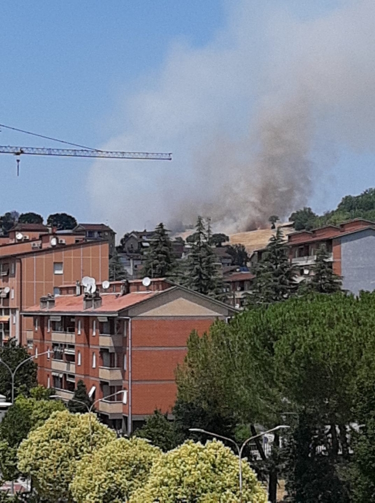 Dopo Fiuminata, ora un vasto incendio sta interessando Tolentino, nello specifico contrada Asinina. Anche a Urbisaglia erano divampate le fiamme ma i vigili del fuoco sono riusciti a domarle. I due incendi sono scoppiati a distanza di pochi minuti uno dall’altro intorno alle 13. Poco dopo, a Urbisaglia i pompieri erano già riusciti a spegnere le fiamme che avevano interessato dei campi coltivati. A Tolentino invece il problema persiste poiché ha interessato una zona boschiva. Tutto pare sia partito da un campo in cui un contadino stava lavorando con una mietitrebbia per poi allargarsi anche a Colmaggiore dove le fiamme minacciano alcune abitazioni. Per domare il rogo i vigili del fuoco stanno utilizzando anche l’elicottero laddove non è possibile arrivare con i mezzi tradizionali.