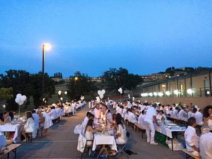 Successo oltre ogni aspettativa, per la quarta Cena in bianco, tenutasi lo scorso sabato 1 luglio, dal tramonto in poi, nell’area del Campus universitario di Camerino, Quasi un’immensa famiglia, riunita attorno alle tavolate vestite di bianco, per l’edizione forse più intensa ed emozionante. Come da copione, location svelata solo all’ultimo per un evento dal forte impatto visivo, quest’anno riscaldato da una specialissima luce. Insieme sotto le stelle, in un’atmosfera allegra e amichevole, la città ha respirato un’aria rilassata e tranquilla: A condividere i valori essenziali dell’amicizia, accanto alla gente di Camerino e dei paesi limitrofi , anche numerosi rappresentanti della Protezione Civile, dell’Esercito, dei Vigili del fuoco, arrivati da Venezia, Belluno, Mantova, Milano, Pomezia, Firenze, insieme a gruppi provenienti da altre città d’Italia. Edizione significativa anche a detta dell’organizzazione, curata dal Coro universitario Cappella musicale del duomo e, in primis, dalla dinamica Roberta Grifantini, anima promotrice dell’evento fin dal 2014.