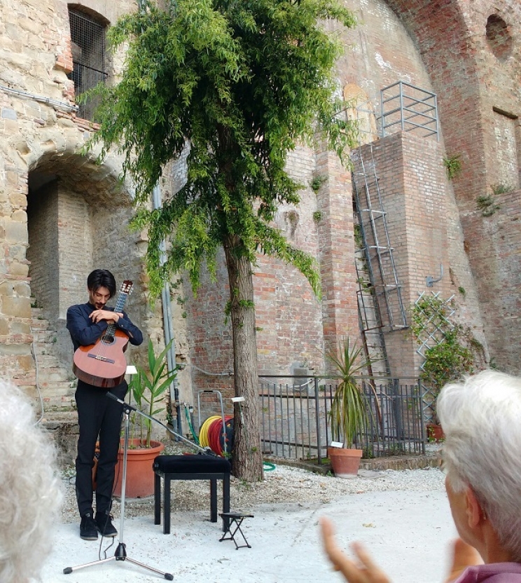 E' cosiì che, dal tramonto fino all'ora tarda della notte più lunga dell'anno, ha preso vita un percorso itinerante di note che, in un  programma coinvolgente,  ha visto protagonisti il chitarrista Cesare Sampaolesi, la Cappella musicale del Duomo- Coro universitario seguito dal Coro delle voci bianche, gli studenti universitari da solisti e in varie formazioni, il Coro dei Licei , l'associazione Adesso Musica e l'istituto musicale Nelio Biondi, la Banda Città di Camerino e i Filarmonici camerti. Un pieno di musica per festeggiare l'inizio dell'estate e accendere di suoni tutta la città. Molto apprezzate e seguite tutte le esibizioni, finite con l'intrecciarsii contestualemente  con i laboratori e le performance degli artisti residenti e degli ospiti speciali del Festival 10 Heartz progettato da Arci Macerata e Arci Ancona. Dai primi battiti suggeriti dalla camminata di ascolto con le installazioni sonore del workshop di soundscape di Stefano Sasso, la serata è in tal caso  proseguita con le anteprime delle suggestive composizioni realizzate da Alessio Ballerini, Godblesscomputers e Rokeya che hanno elaborato in suono, impressioni ed emozioni vissute durante i giorni trascorsi in residenza nelle zone colpite dal sisma, visitandone le 'zone rosse' e ascoltando i racconti della popolazione. Sotto la luna d'estate, altre vibrazioni e belle sensazioni, le hanno suggerite le performance di Yakamoto Kotzuga e Mana ( Vaghe Stelle), che hanno introdotto il coinvolgente finale del Dj set di Nello.