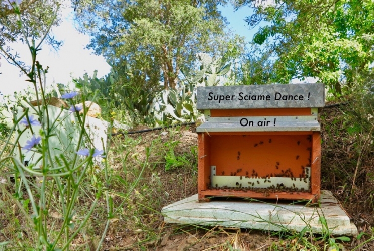 Super Sciame Dance è parte di SCIAME (2017, in progress, Studiovuoto)processo nomade di partecipazione e creazione condivisa con al centro le api, la comunità alveare e la comunità umana, il territorio; è un percorso in cui il modo di vivere delle api ispira il processo stesso, le sue pratiche condivise, le relazioni, lo spazio che ne emerge. SCIAME inizia il suo viaggio nel 2017 in Catalogna, a Barcellona, prosegue nel delta del fiume Ebro e a El Perelló, il villaggio del miele, e a Pievebovigliana, in Italia, nel 2018.