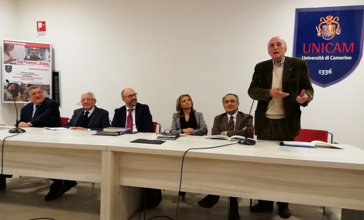 Si è viaggiato sull’onda del ricordo e sulle ali della speranza per una rinascita, nel corso della presentazione del libro “Camerino- Da meta del viaggio nello spazio a mito dell’anima nel tempo”. Gremita per l’occasione la sala riunioni di Unicam che ha ospitato l’evento, tra i primi dedicati alla parte culturale della rievocazione storica della Corsa alla Spada. Ad introdurre gli ospiti che hanno contribuito alla stesura del volume, è stata la stessa presidente dell’associazione Sandra Gentili la quale, non ha mancato di sottolineare l’emozione suscitata dai testi e dalle immagini delle sue pagine. Curato dall’avvocato Renato Mammucari, illustre critico e storico dell’arte autore di innumerevoli pubblicazioni dedicate alla campagna romana e alle paludi pontine, il volume, edito da LuoghiInteriori di Città di Castello, è stato realizzato con il contributo di “Pasta di Camerino”.