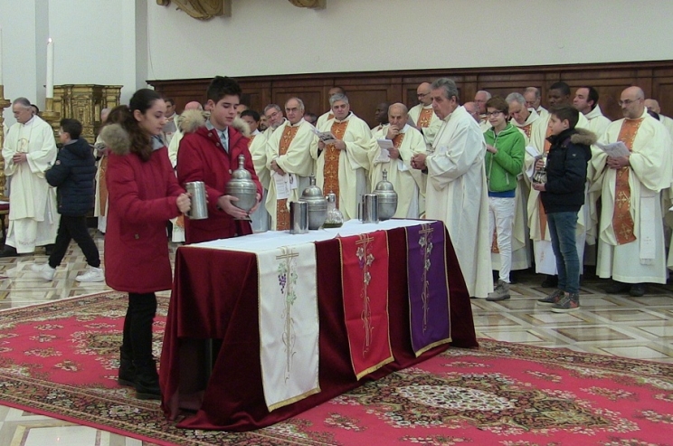 Nel giorno in cui la Chiesa ricorda l'istituzione del sacerdozio l'arcivescovo Francesco Giovanni, rivolgendosi ai sacerdoti, li ha esortati a “riscoprire il Concilio Vaticano II”, secondo l'invito di papa Francesco, abbandonando, nello spirito di un'autentica “conversione ecclesiale” la logica del “si è sempre fatto così”, a mettere i laici nella condizione di partecipare attivamente alla vita e alla missione della Chiesa, “soprattutto se guardiamo le nostre forze di preti e il nostro numero”, ad aiutare tutti, soprattutto i giovani, “a coltivare la fede con la Parola di Dio”. “Non tiriamo in ballo giustificazioni (età, fatica, numero) – ha concluso mons. Brugnaro - che piuttosto che mettere in evidenza le reali nostre difficoltà rivelano che nel nostro animo s’è posata la polvere d’una certa stanchezza o disperazione che ingiustamente facciamo ricadere sulla Parola di Dio, sulla Chiesa, sui tempi, sulla ragione identitaria della nostra missione di preti. Mai: né perché vecchi, né perché ammalati, né perché pochi smetteremo di essere un riferimento di Cristo e a Cristo Salvatore nella sua Chiesa”. Momento particolare della celebrazione la benedizione dell'olio degli infermi, dell'olio dei catecumeni e del crisma, olio misto a profumo utilizzato per l'unzione nel Battesimo, nella Cresima e nell'Ordine Sacro, consegnati al termine del rito ai vicari foranei.