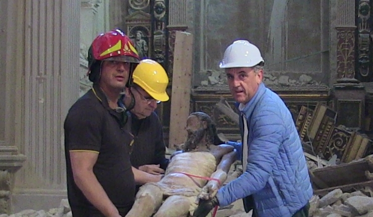 Interesse non solo locale per il recupero del Cristo ligneo seicentesco dalle macerie della chiesa di San Gregorio. Lanciato attraverso il nostro sito internet e ripreso in prima pagina dal settimanale L'Appennino camerte, l'avvenimento ha trovato risonanza anche sulle pagine del Corriere Adriatico con un ampio servizio a firma della giornalista Giulia Sancricca. Non solo, ma anche l'emittente televisiva NAZIONALE  Tv2000 (canale 28 del digitale terrestre e canale 140 della piattaforma Sky) trasmetterà questo giovedì alle ore 18.30 un video esclusivo delle operazioni di recupero da parte di Pierluigi Moriconi, responsabile del Mibact, e del vigile del fuoco del distaccamento di Tolentino Elvio Tedeschi. TV2000, visto il grande interesse, nei prossimi giorni potrebbe replicare il servizio con approfondimenti.