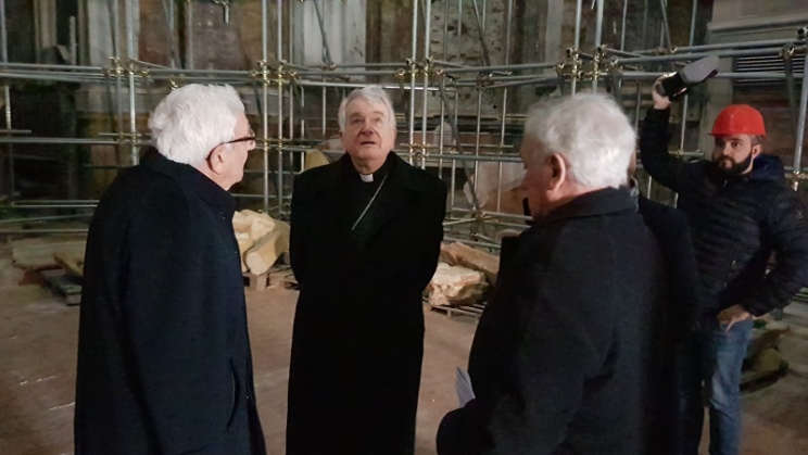 Un lungo colloquio con i sacerdoti e i tecnici da parte di mons. Tscherrig, che si è mostrato curioso nel conoscere lo stato dei luoghi e delle situazioni, chiedendo spiegazioni in particolare sui progetti e le aspettive del futuro e della ricostruzione.