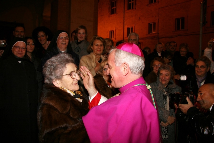 Festeggia questo venerdì 16 marzo il raggiungimento del 75° anno di età l'arcivescovo Francesco Giovanni. ( nella foto a destra con la mamma Anna ) Una data particolare per mons. Brugnaro che presenta al Papa la rinuncia all'ufficio di guida della diocesi di Camerino – San Severino Marche sulla quale sarà lo stesso Pontefice a pronunciarsi. Secondo il Motu proprio di Papa Francesco “Imparare a congedarsi”, infatti, per essere efficace la rinuncia dev'essere accettata dal Sommo Pontefice, che deciderà valutando le circostanze concrete. Una volta presentata la rinuncia, l'incarico è considerato prorogato fino a quando non sia comunicata all'interessato l'accettazione della rinuncia o la proroga, per un tempo determinato o indeterminato. "Ogni eventuale proroga – ha precisato Papa Francesco - si può comprendere solo per taluni motivi sempre legati al bene comune ecclesiale. Questa decisione pontificia non è un atto automatico ma un atto di governo; di conseguenza implica la virtù della prudenza che aiuterà, attraverso un adeguato discernimento, a prendere la decisione appropriata”. Da Roma ancora nessuna comunicazione, come ha precisato il vicario generale mons. Nello Tranzocchi ai sacerdoti riuniti per il ritiro mensile.