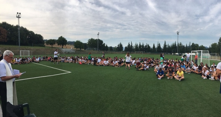 Oltre 300 giovani hanno dato il via da Camerino a “Marche in Cammino", pellegrinaggio sulla strada verso Casa lungo la Via Lauretana. Organizzato dalle diocesi del Sud delle Marche in preparazione al Sinodo dei Giovani, che si svolgerà a Roma l’11 e il 12 agosto prossimi, tappa dopo tappa, il cammino incontrerà le comunità colpite dal sisma, facendo sosta nei luoghi significativi di spiritualità fino a raggiungere Loreto nella giornata di venerdì 10 agosto. Zaino in spalla e tenaci motivazioni in cuore, fin dal pomeriggio di sabato, un fiume di ragazzi, ha raggiunto gli impianti sportivi della loc. Le Calvie. Ad accoglierli i vescovi di Camerino e Macerata Francesco Brugnaro e Nazareno Marconi, insieme a religiosi e rappresentanti delle aggregazioni di pastorale giovanile delle diocesi camerte settempedana e maceratese, delle amministrazioni locali e dell’università;, il vespro e il momento di preghiera presso lo Stadio Livio Luzi hanno introdotto ai successivi momenti conviviale e di condivisione, caratterizzati da interventi e testimonianze.