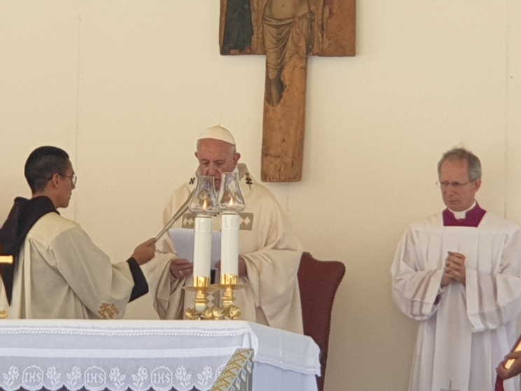 Poi il messaggio ai presenti: “Al termine di questa celebrazione - ha detto - , saluto cordialmente tutti voi qui presenti. Estendo con affetto il mio saluto ai malati, agli anziani, ai carcerati, e a tutti coloro che, attraverso la radio e la televisione, si sono uniti spiritualmente a questa Santa Messa. Rivolgo un sentito ringraziamento a quanti – istituzioni, enti, associazioni e singole persone – hanno lavorato per questa mia breve ma intensa visita, collaborando generosamente con l’Arcidiocesi di Camerino-San Severino Marche.