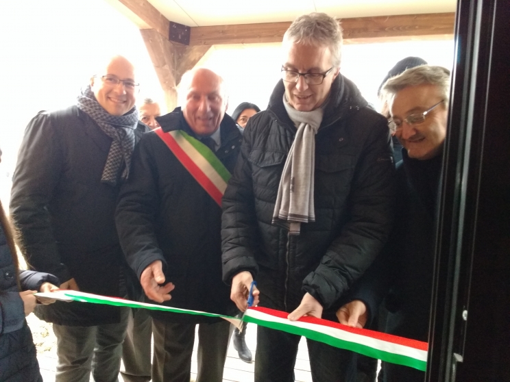 Al taglio del nastro, insieme al sindaco Mario Baroni, erano presenti il presidente della Regione Marche Luca Ceriscioli, l'assessore Angelo Sciapichetti e il parroco don Gianni Fabbrizi .