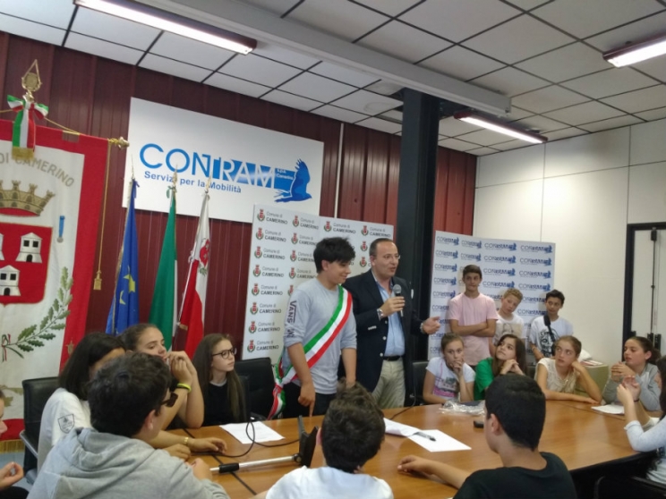 Prima seduta del Consiglio comunale delle Ragazze e dei Ragazzi di Camerino. Dopo l'insediamento dello scorso 15 maggio, primo tavolo di lavoro istituzionale per la "giunta junior" guidata dal neo sindaco eletto Francesco Palena, con l’importante compito di rappresentare il gruppo dei giovani amministratori nei prossimi mesi di mandato. Presente il sindaco Gianluca Pasqui che, in apertura , ha consegnato la fascia ufficiale a Francesco Palena che la conserverà per due anni.