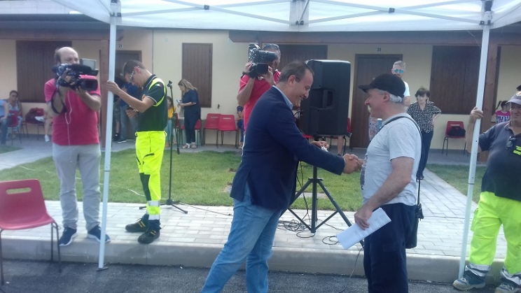 Una cerimonia sobria, quasi di famiglia, con la sola presenza delle autorità cittadine, il sindaco Gianluca Pasqui, il vice Roberto Lucarelli, il rettore di Unicam Claudio Pettinari, rappresentanti della Protezione civile nazionale per la consegna a Camerino di altre 31 casette nell'area Cortine Centro. Sono così rientrate altre famiglie nella città ducale, in una zona che il sindaco Pasqui definisce strategica per il futuro di Camerino. "Una zona questa fondamentale per il futuro temporaneo della nostra terra, anche se saranno ancora molti gli anni che ci aspettano prima di poter vedere ricostruita tutta la nostra città – le parole del primo cittadino – Un'area, quella delle Cortine, che diventa ancora più importante per Camerino perchè con il centro commerciale che sarà posto nelle vicinanze, con le scuole vicine, con l'università che verrà collegata attraverso uno specifico passaggio, con un terminal bus che troverà qui la costruzione andremo a ricostituire la nostra comunità. Un aspetto, questo, essenziale, per poter ridare una socialità e un presente che possa realmente guardare ad un futuro certo. E' chiaro che oggi la gioia è immensa per la consegna di queste 31 Sae, con il rietnro in città di persone da tempo lontane, anche se non è una festa dal momento che sento tutto il peso del tempo, troppo, che è trascorso". Dopo aver ringraziato le ditte che hanno lavorato all'allestimento dell'area e alla costruzione delle soluzioni abitative, nonchè l'ufficio tecnico comunale per il lavoro svolto e la continua attenzione dimostrata, il sindaco pone l'accento sulla consapevolezza che la comunità camerte, attraverso i suoi valori, riuscirà a risollevarsi da un dramma che "ha assunto le proporzioni di una devastazione post bellica". Restano ancora da consegnare circa 250 casette, ma il sindaco mostra fiducia circa i tempi. "Da qui in avanti consegneremo le Sae con cadenza quasi settimanale – conclude Pasqui – per raggiungere l'obiettivo di riportare tutta la popolazione all'interno delle casette al massimo entro la metà di settembre. Contiamo, poi, per il mese di ottobre di avere anche la costruzione del centro commerciale, che sarà anche luogo di aggregazione e socialità, e a quel punto avremo realmente messo le basi per guardare ad un futuro di ricostruzione per la quale ci vorrà del tempo, ma che sarà sicura".