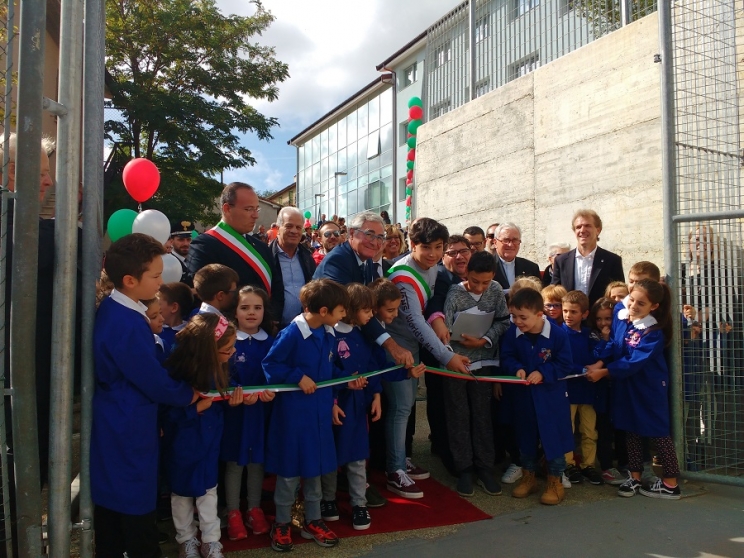 Mattinata gioiosa in via Medici a Camerino per l'inaugurazione dell’area esterna alla nuova scuola e del contiguo campo sportivo polivalente, fatto oggetto di un significativo recupero. Al taglio del nastro è intervenuto il sottosegretario del Miur Salvatore Giuliano. Tra le grida festanti dei bambini,insieme al sindaco Gianluca Pasqui, ai componenti la giunta comunale, con il dirigente Maurizio Cavallaro e tutto il personale della scuola, hanno presenziato alla cerimonia l'arcivescovo Brugnaro, il rettore di Unicam Pettinari,  numerosi genitori e le autorità cittadine, militari e civili. Di particolare significato la partecipazione all'evento dei benefattori dell'associazione Panathlon di Como, rappresentati dal presdente Achille Mojoli, dal vice presidente Giuseppe Ceresa  e dal prof. Manlio Siani, consigliere della commissione cultura e scuola dell'associazione.