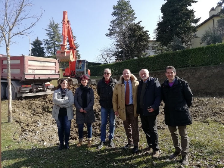 Partiti i lavori nel'area verde di Montagnano a Camerino. Presenti il sindaco Gianluca Pasqui, l'ingegnere Marco Orioli direttore dell'ufficio tecnico comunale, la presidente del Comitato di Montagnano Cristina Petrelli e le imprese che si occuperanno delle opere, si è dato avvio al primo lotto funzionale che, secondo una tempistica prevista di circa 60 giorni, porterà alla realizzazione di un centro sociale polifunzionale.