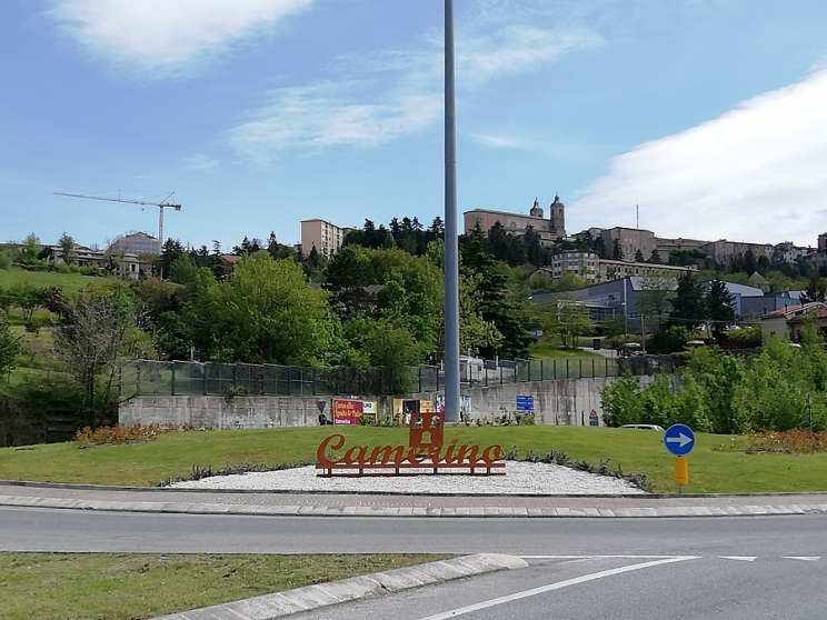 Negli anni, la manifestazione Cortili in fiore ha sempre voluto regalare un qualcosa alla città. "Così fu nell'edizione del 2016- quando pensammo di chiedere ad Anas, di poter sistemare la rotatoria- afferma la presidente Fiorella Paino- Il tutto è stato bloccato dai noti eventi sismici, tuttavia, nel frattempo come Archeoclub non ci siamo  fermati, inoltrando  nuova richiesta. L'autorizzazione alla sistemazione dello spazio è giunta nel giugno del 2017 e, successivamente, si è provveduto a sbrigare una serie di altre pratiche, soprattutto a contattare  il comune, senza il cui aiuto non avremmo potuto partire". A maggio 2018 era arrivata la delibera comunale e l'avvio dello studio del progetto rispondente alle regole dettate da Anas, al quale ha prestato la sua competenza di esperto del settore  Giuseppe Salvucci ,tra gli organizztori delle varie edizioni di Cortili iin fiore. Su fondo a breccino grosso, in due distinti punti della rotatoria, sono intanto già  ben visibili le due grandi scritte in metallo ramato, riportanti lo stemma e il nome della città di Camerino.  Il posizionamento delle scritte in ferro, ultimo tocco prima dell'inaugurazione ufficiale di tutto lo spazio che si appresta via via, ad essere migliorato e arricchito  nel tempo, con la sistemazione di nuove piante ed essenze, così da assicurare, a seconda delle stagioni,diverse e variegate colorazioni naturali della rotatoria